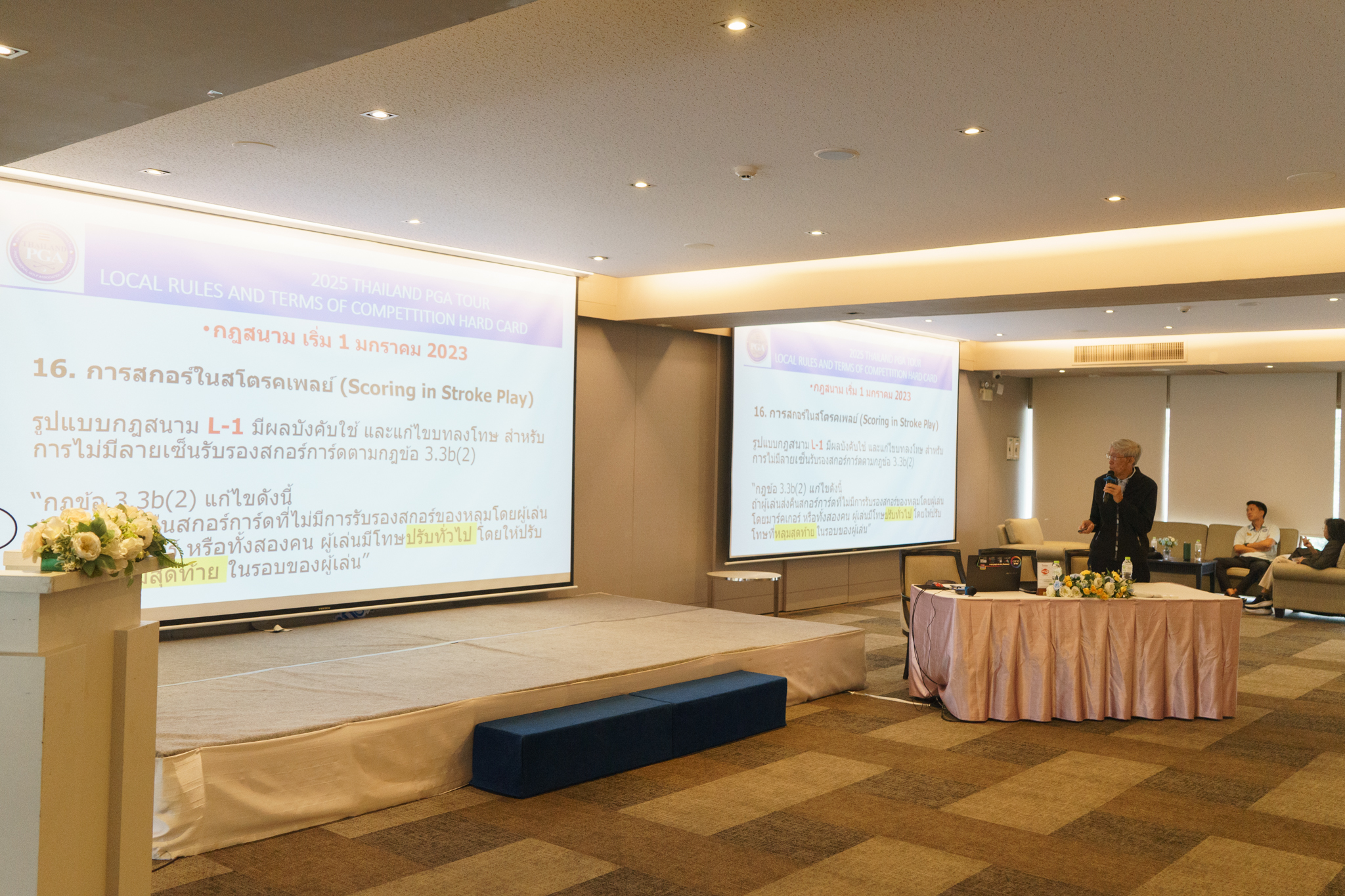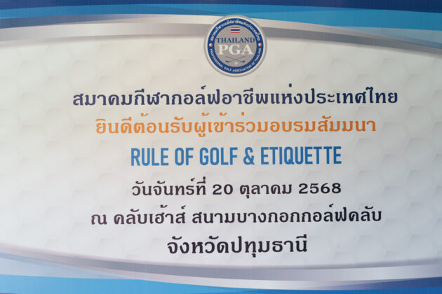 สมาคมกีฬากอล์ฟอาชีพแห่งประเทศไทย ดำเนินการจัดอบรมกฎข้อบังคับและมารยาทกีฬากอล์ฟ ครั้งที่ 2/2568 เมื่อวันที่ 20 ตุลาคม 2568 ณ ห้อง Hole In One 1 สนามบางกอก กอล์ฟ คลับ จ.ปทุมธานี ซึ่งเป็นกระบวนการแรกของหลักสูตร Thailand PGA Q-School 2025 #2 เพื่อเสริมความรู้ความเข้าใจและอัปเดตกฎกอล์ฟล่าสุดก่อนลงสนามสอบโปร