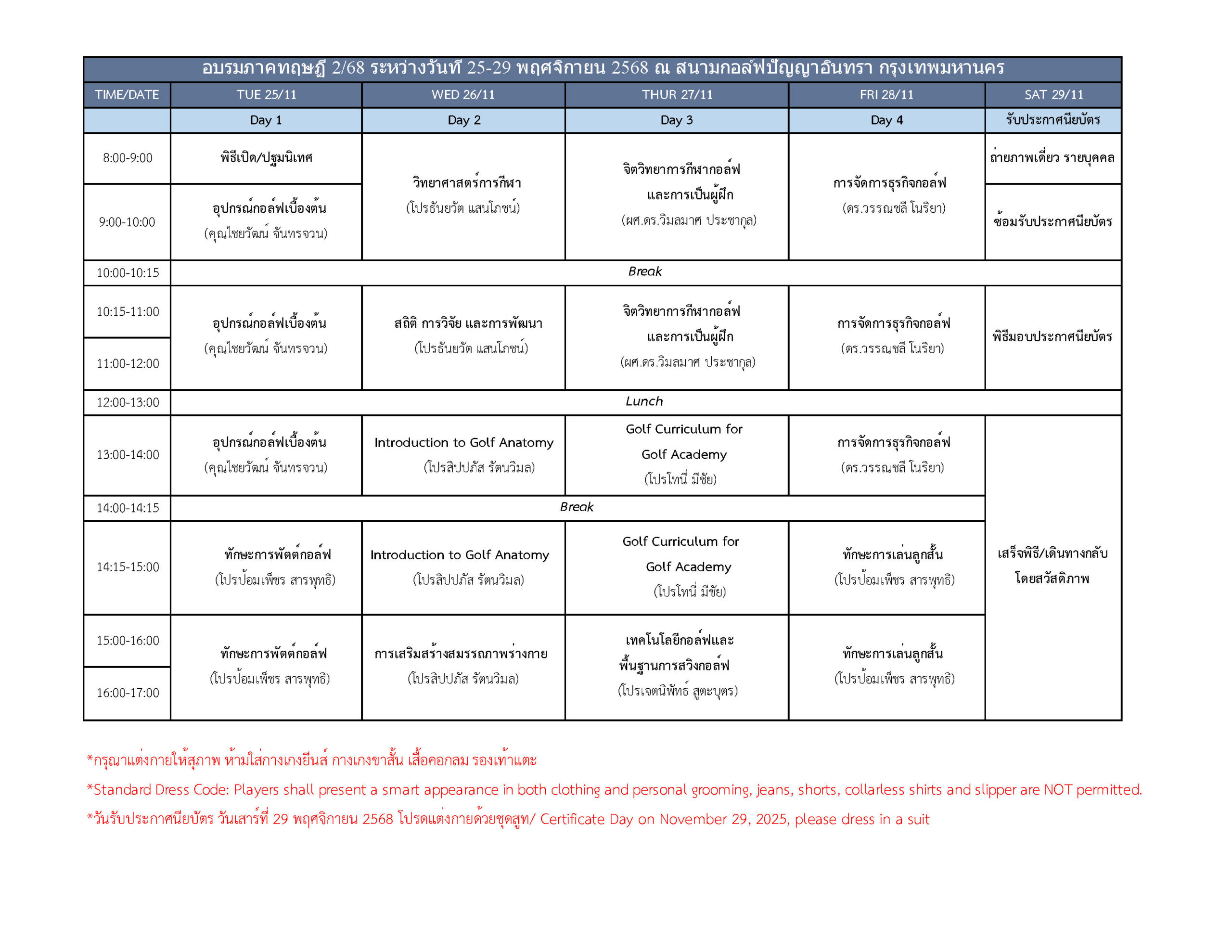 ระหว่างวันที่ 25-29 พฤศจิกายน 2568 ณ สนามปัญญาอินทรากอล์ฟคลับ กรุงเทพฯ