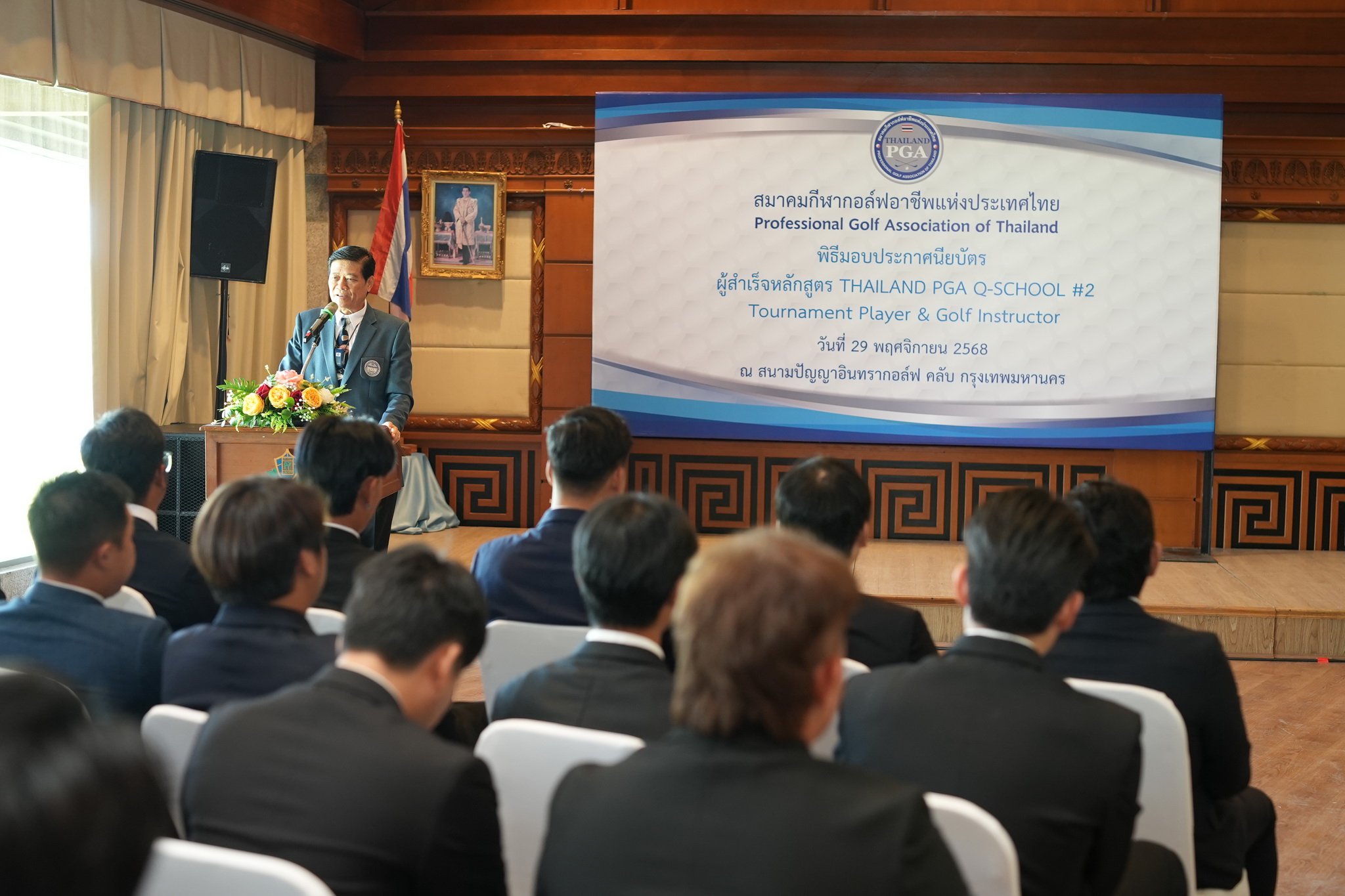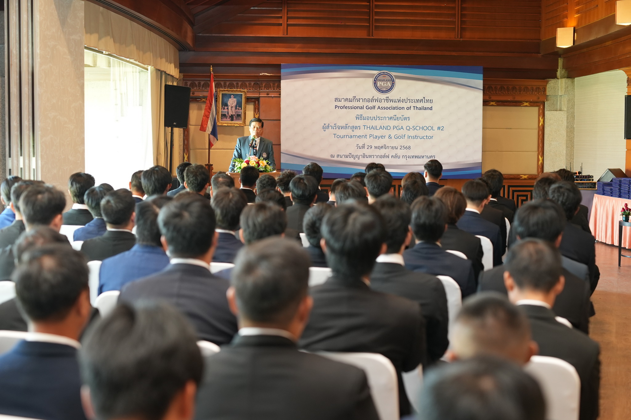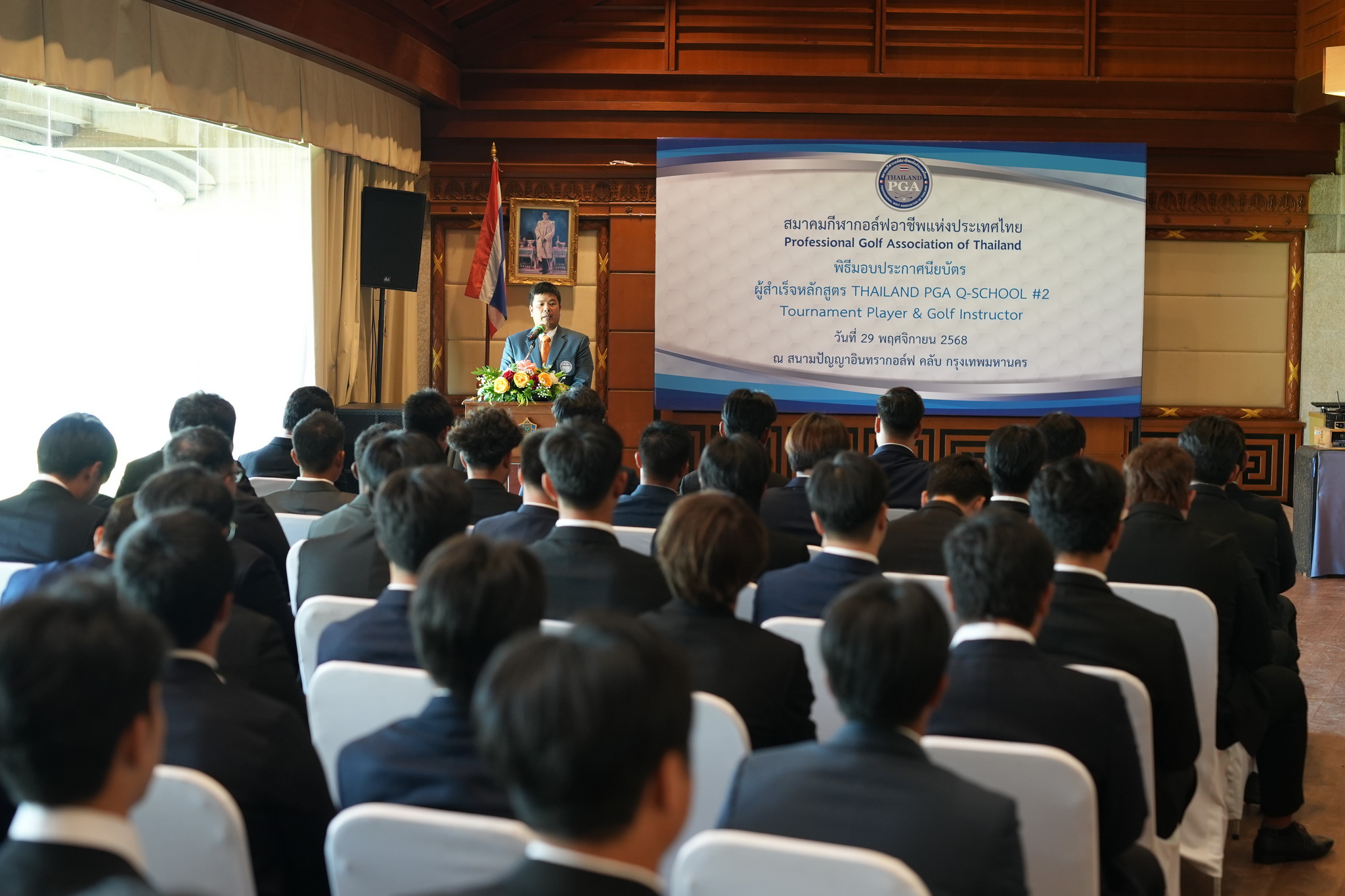 ได้จัดพิธีมอบประกาศนียบัตรแก่ผู้สำเร็จหลักสูตร Thailand PGA Q-School 2025 #2 จำนวนทั้งสิ้น 83 คน แบ่งเป็นประเภทนักกอล์ฟอาชีพ (TP) จำนวน 21 คน และประเภทผู้ฝึกสอนกอล์ฟอาชีพ (GI) จำนวน 62 คน โดยได้รับเกียรติจากโปรป้อมเพ็ชร สารพุทธิ อุปนายกสมาคมฯ เป็นผู้มอบประกาศนียบัตร เมื่อวันที่ 29 พฤศจิกายน 2568 ณ สนามปัญญาอินทรากอล์ฟคลับ กรุงเทพฯ