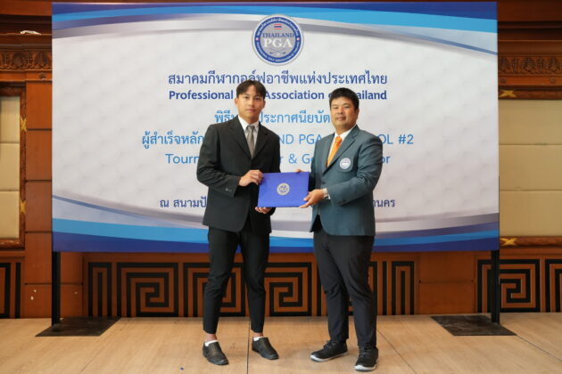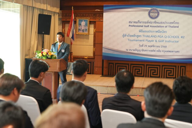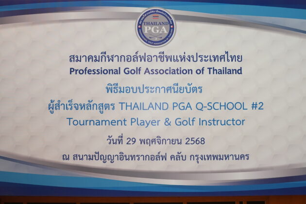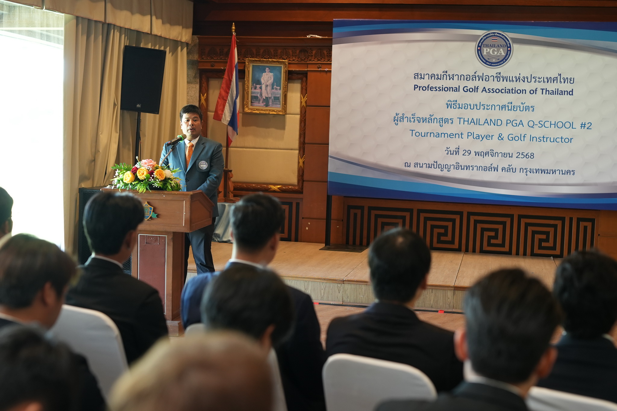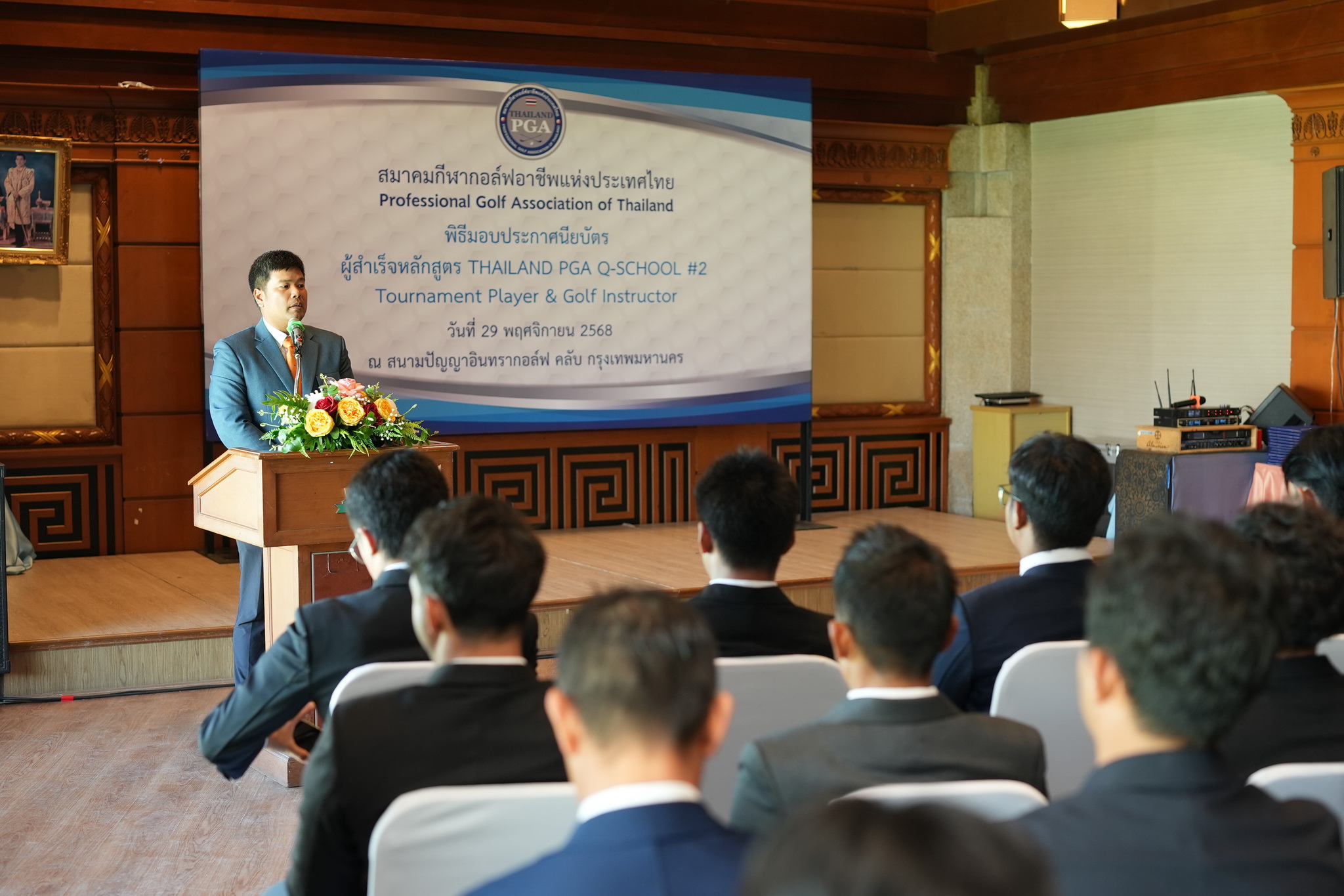 ได้จัดพิธีมอบประกาศนียบัตรแก่ผู้สำเร็จหลักสูตร Thailand PGA Q-School 2025 #2 จำนวนทั้งสิ้น 83 คน แบ่งเป็นประเภทนักกอล์ฟอาชีพ (TP) จำนวน 21 คน และประเภทผู้ฝึกสอนกอล์ฟอาชีพ (GI) จำนวน 62 คน โดยได้รับเกียรติจากโปรป้อมเพ็ชร สารพุทธิ อุปนายกสมาคมฯ เป็นผู้มอบประกาศนียบัตร เมื่อวันที่ 29 พฤศจิกายน 2568 ณ สนามปัญญาอินทรากอล์ฟคลับ กรุงเทพฯ