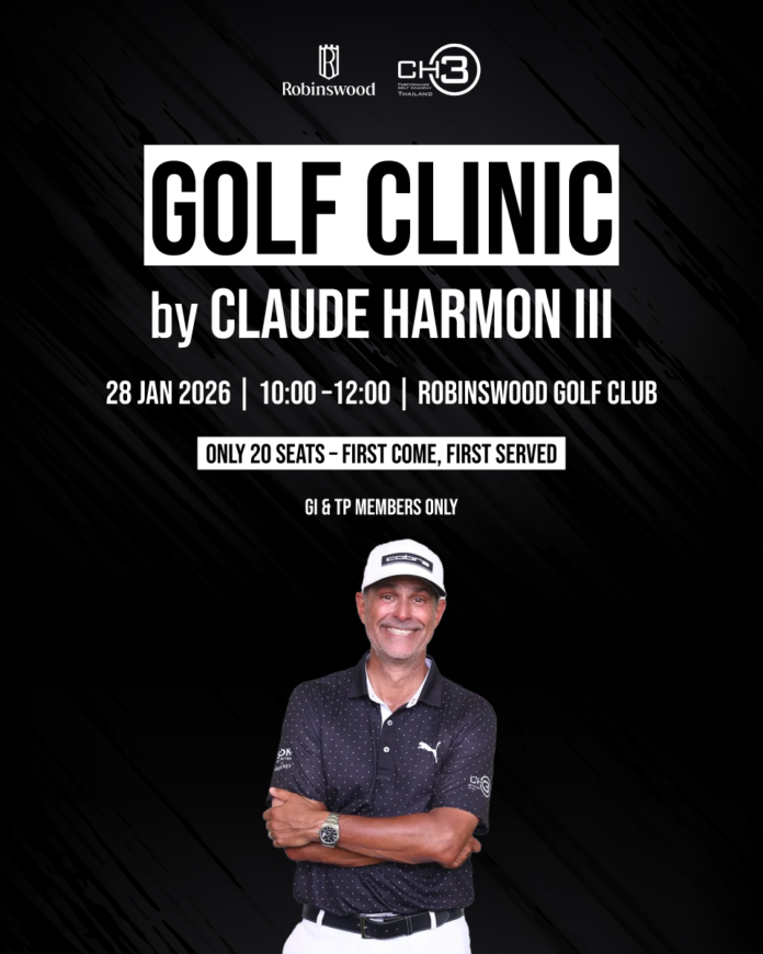 ด้วยสนาม Robinswood Golf Club ร่วมกับ CH3 Performance Acadeny Thailand มีความมุ่งมั่นในการส่งเสริมและพัฒนาศักยกาพกีฬากอล์ฟของประเทศไทยให้ก้าวสู่มาตรฐานระดับสากล จึงได้เชิญ Mr. Claude Harmon III ผู้ฝึกสอนกอล์ฟระดับโลก มาแบ่งปันองค์ความรู้ ประสบการณ์ และแนวคิดผ่านการอบรมในรูปแบบคลินิกกอล์ฟ