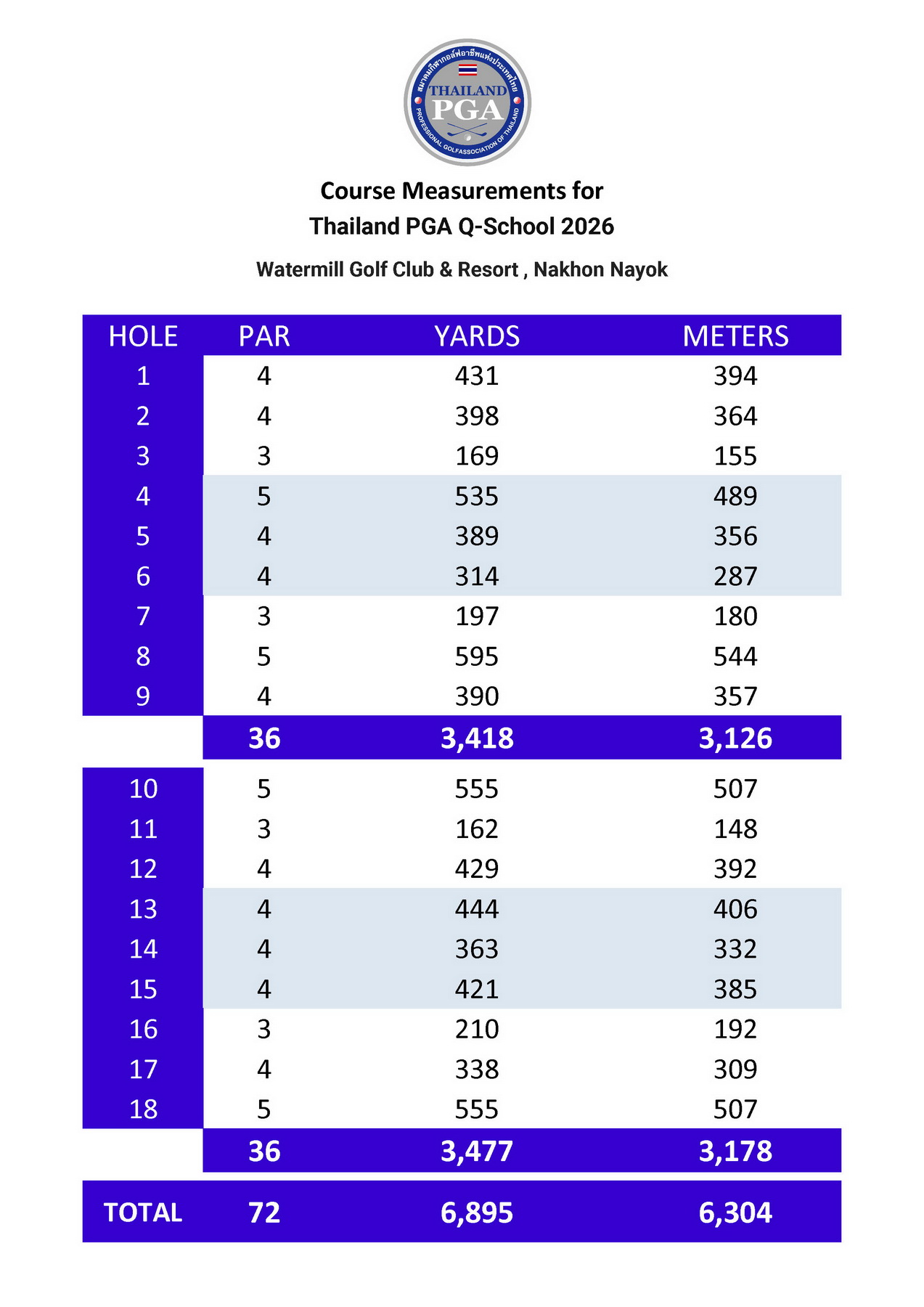 - วันที่ 24-27 มีนาคม 2569 สนามวอเตอร์มิลล์ กอล์ฟ คลับ แอนด์ รีสอร์ท จ.นครนายก