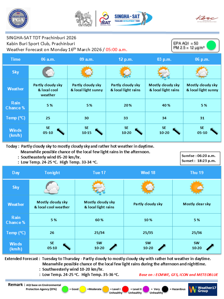 สมาคมกีฬากอล์ฟอาชีพแห่งประเทศไทย จัดการแข่งขันกอล์ฟอาชีพ ไทยแลนด์ ดีเวลลอปเมนท์ ทัวร์ (ทีดีที) รายการแรกของฤดูกาล "สิงห์-เอสเอที ทีดีที ปราจีนบุรี 2026" ระหว่างวันที่ 18-20 มีนาคม 2569 ณ สนามกบินทร์บุรี สปอร์ต คลับ จ.ปราจีนบุรี พาร์ 72 ระยะ 7,437...